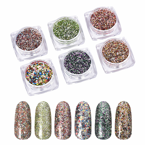 6 Lọ/Túi Dây Kéo Màu Sắc Hỗn Hợp Shinny Sequins Nail Art Glitter Powder Set Số Lượng Lớn Hình Dạng Chunky Gel Nail Glitter Cho Nail Art